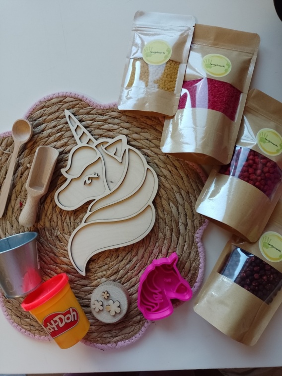 Zestaw sensoryczny JEDNOROŻEC to starannie skomponowana propozycja dla dzieci, które uwielbiają zabawy sypkimi materiałami, przesypywanie, ugniatanie i odkrywanie różnych faktur. Idealny do zabawy samodzielnej, zajęć Montessori oraz wspólnego spędzania czasu z dzieckiem.